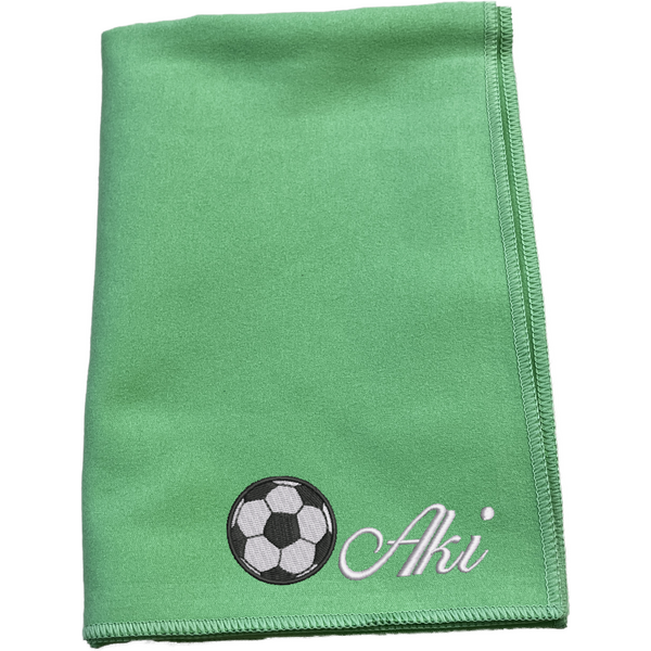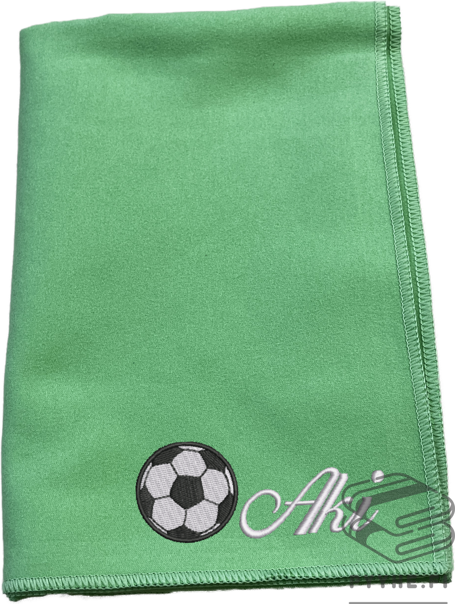 Kevyt ja imukykyinen Sporttipyyhe jalkapallon kuvalla ja nimikoinnilla – Futaajan paras ystävä
